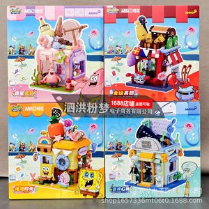 Areax レンガブロックスポンジボブクイズストアストリートシーン組み立ておもちゃ男の子と女の子子供の日のギフト