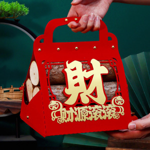 6つの幸せな薪+豊かな富(すべて赤)+リボン