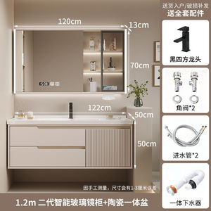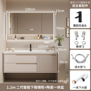 高精細第二世代スマート収納コンパートメント + オーク材ドアパネル + 宅配 - 120cm セラミック一体型洗面器 + 無料交換引き出し式蛇口