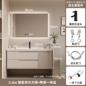 高精細第二世代スマート収納コンパートメント + オーク材ドアパネル + 宅配 - 80cm セラミック一体型洗面器 + 無料交換引き出し式蛇口