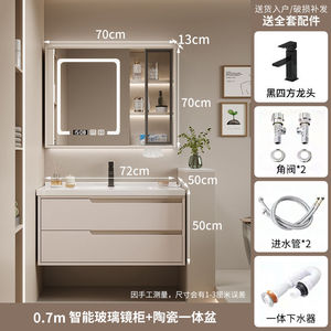 第二世代スマートガラスドア + オーク材ドアパネル + 宅配 - 70cm セラミック一体型洗面器 + 無料交換引き出し式蛇口