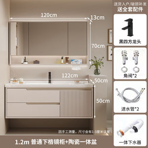 高精細普通収納庫+オーク材ドアパネル+宅配-120cm陶器一体型洗面器+引き出し式蛇口無料交換