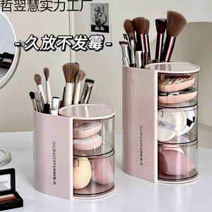 粉扑收纳盒旋转防尘梳妆台桌面美妆蛋气垫口红化妆