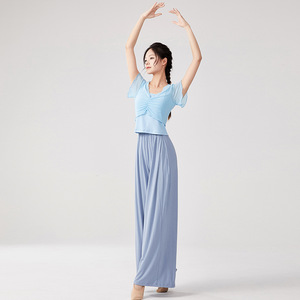 ダンス服スーツ、クラシックダンス練習服、大人モダンダンスワイドパンツダンス服、小飛袖中国舞踊服