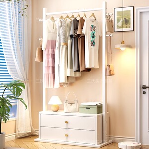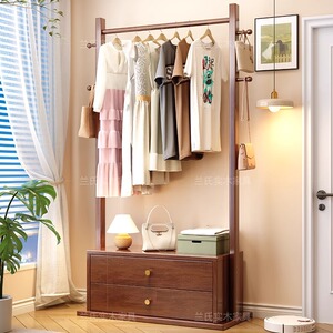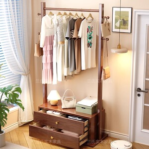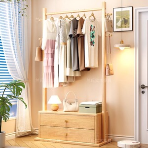 無垢材洋服ラック収納ベッドサイドテーブル一体型引き出し付きコートラック小さなアパートの寝室床置き収納ラック
