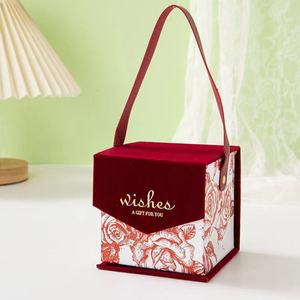 手描きのバラ柄ベルベットギフトボックス、高級質感ベルベットギフトボックス、ウェディングキャンディーポータブルボックス卸売