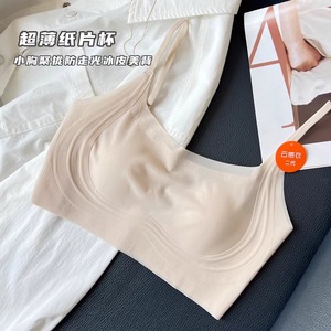 夏用女性用大きい胸と小さい胸の下着、極薄で涼しい、シームレスなインビジブルリキッドファンデーション、細いショルダーストラップ、美しい背中のブラジャー、薄いスタイル