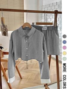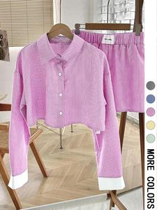 国境を越えた対外貿易欧米風女装春夏の新型衝突色縞長袖シャツ衝突色縞パンツセット