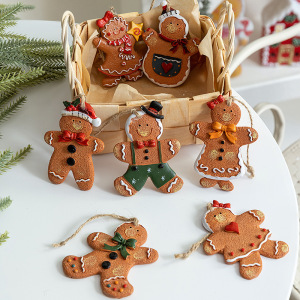 跨境圣诞树复古姜饼人配饰树脂手绘礼品可爱小挂件圣诞树上装饰品