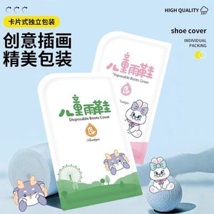 新しい子供用使い捨てレインシューズカバー漫画防水滑り止め学生防雨フットカバー厚く耐摩耗性高チューブ水 1H