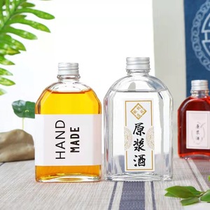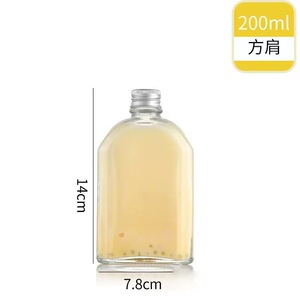 スポットクリエイティブコーヒーミルクティージュースドリンクフラットワインボトルコールドグリーン透明ガラス斜め肩アルミ蓋湾曲小