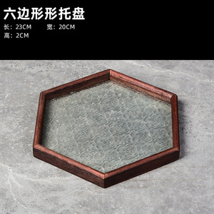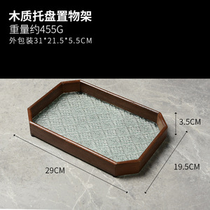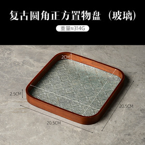 ベゴニアエンボスガラストレイ胡桃色長方形茶盤収納置物茶水コップ果物菓子盤