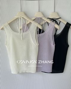 CZ ZHANG夏の韓国版カジュアルで怠惰な純色のバラの首を掛けてベストのニットの女性b 25985
