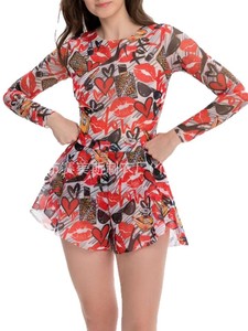 Купальник プリント スプリット水着 ツーピース サンプロテクション ショーツ メッシュ ロシア水着