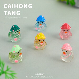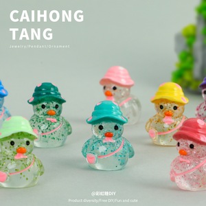 かわいい立体的な細かいキラキラ帽子バックパックアヒルの装飾品樹脂クリエイティブ下駄花キーホルダーペンダント卸売