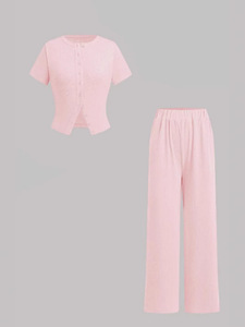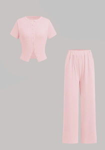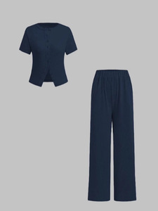 2025年夏ヨーロッパとアメリカのアマゾンクロスボーダーサプライボタン付きスリム半袖Tシャツシングルブレストトップとパンツスーツ