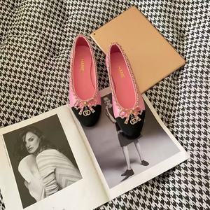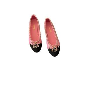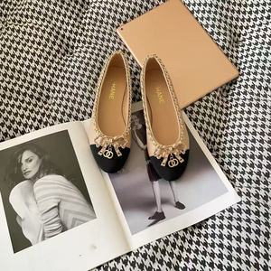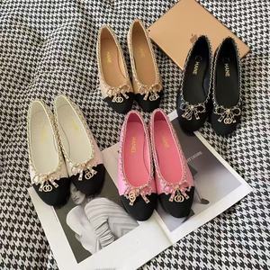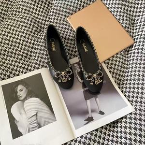 高バージョンのXiaoxiangfengチェーンリボン新しいスタイルのレディースシューズ本革ファッションフラットヒールラウンドトゥ浅い口の女性のモデル