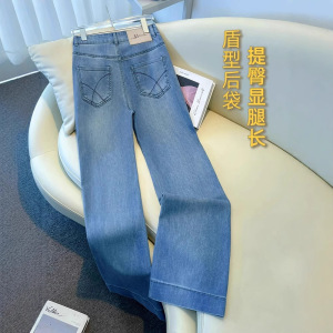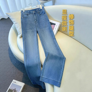 女性のためのスリムフィットジーンズ 2025 夏の新しいハイエンドスリムフィット人気のドレープ馬蹄パンツライトカラーフレアパンツ