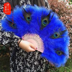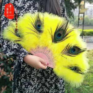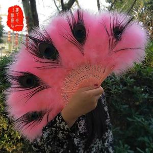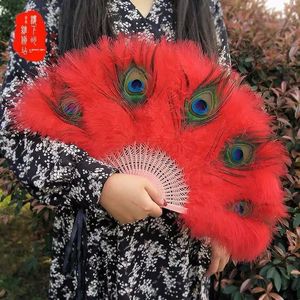 孔雀の羽の扇子の生放送のショーのチャイナドレスのショーのダンスの扇子の古風な扇子のネットの赤い色の厚い毛羽の扇子
