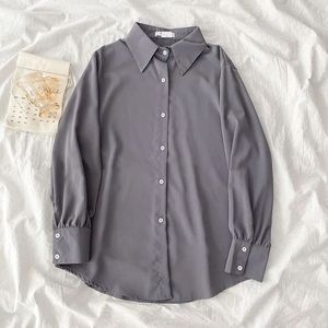 無地シフォンシャツ レディース 韓国風 春秋 ニッチデザイン 長袖 ゆったり ゆったりシルエット 万能トップス