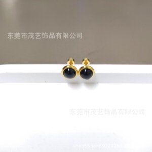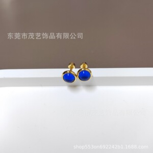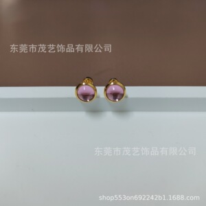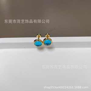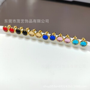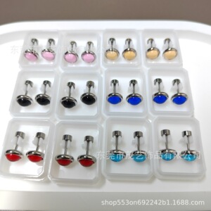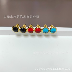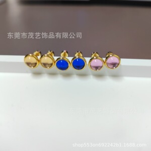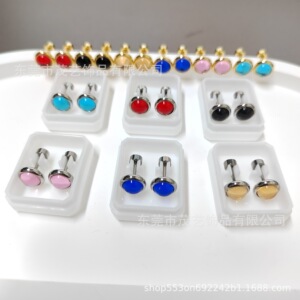 外贸热销不锈钢车杯彩色猫眼石圆形耳钉时尚百搭镶钻耳饰厂家直销