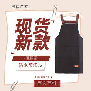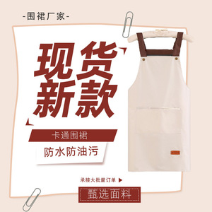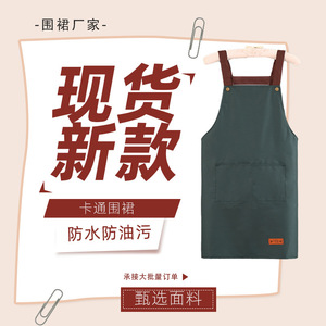 半袖で腰を囲んで家庭用キッチン料理をする女性作業服防水防油カバーの新型四季男性モデルのカスタムエプロン