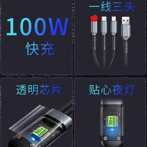 透明編組一モップ三データ線適用アップルファーウェイアンドロイド100Wスーパーフラッシュ充電三合一充電線