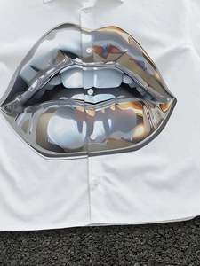 ヨーロッパとアメリカのクロスボーダー大きな口プリントパターン男性と女性の夏のファッションポロシャツ