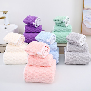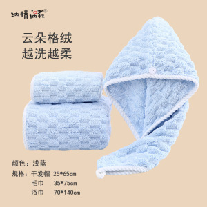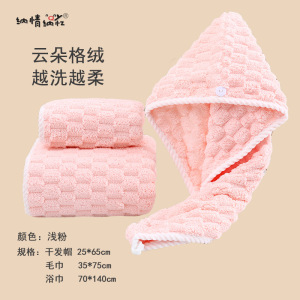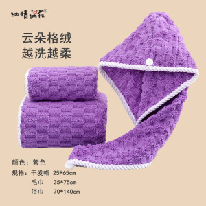 雲の格のタオルのバスタオルの乾いた髪の帽子のセットのサンゴの絨毯の厚い家庭用バスタオルの美容院のバスタオルの卸売り