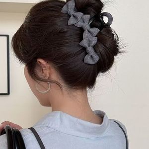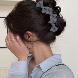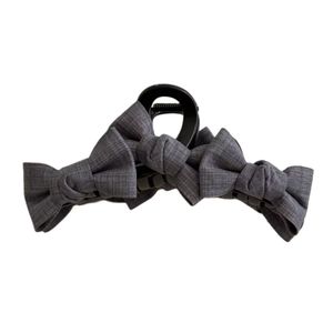 韓国系百合チベット生地グレー系蝶結び挟み通勤風半結髪サメ挟み髪飾り