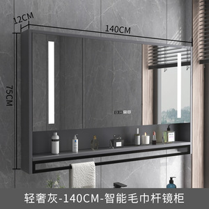 スマートバスルームミラーキャビネット壁掛けバックライト付き防曇バスルームミラー収納ラック個別に収納できるオールインワンキャビネット