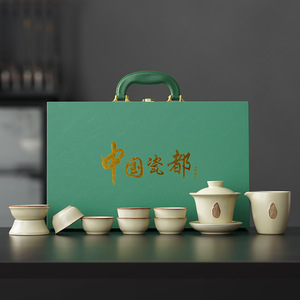 汝窯工夫茶器礼箱セット家庭用オフィスセット陶磁器セットセット高級ビジネスお土産