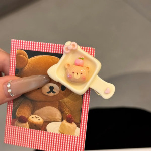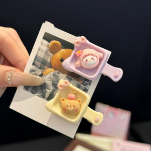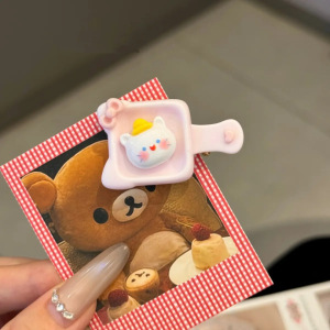 かわいい漫画の猫のリボントレイヘアピン前髪クリップサイドクリップピンク甘いインスタイルヘアアクセサリー