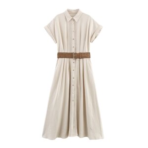 PB&ZA レディース 2025 夏新作 ベルト付き リネンブレンド ミディシャツドレス 8372105
