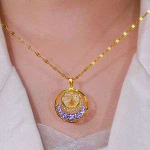 フレンチスタイルバイオレットセーフティバックルネックレス高級中空メッシュボール鎖骨チェーン八宝コンパスネックレス