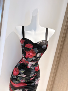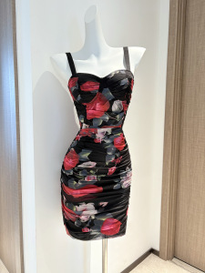春夏新作プリーツウエストカバーヒッププリントヒップカバードレス