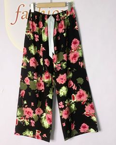 綿シルク素材の長ズボン、妊婦用パジャマ、女性用純粋な綿繊維の薄手のワイドレッグ七分丈パンツ、通気性があり涼しいホームウェア