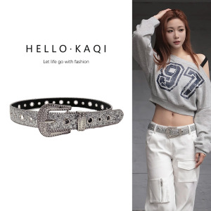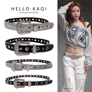 ギャルベルト女性アメリカレトロy2kパンク風銀色黒ドリルとスカートジーンズベルト