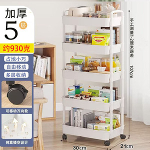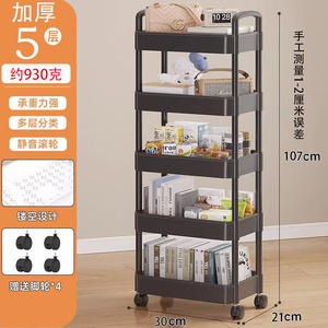 3、4、5層トロリー収納ラック、多層モバイルキッチンバスルームバスルームベッドサイドスナック収納本棚