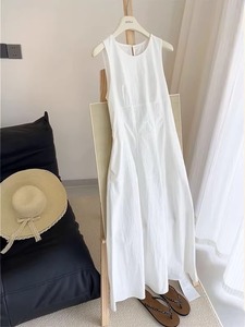 女性のためのフレンチホワイトベストドレス2025新しい夏スタイルのハイエンドの気質シックで美しいノースリーブロングスカート