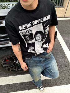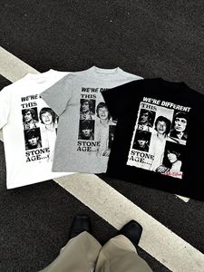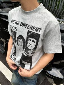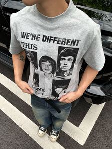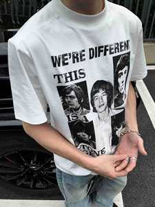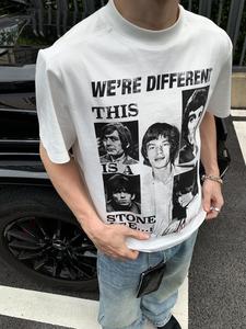 EMEメンズ夏バンドプリント人形レトロ小襟元半袖teeシャツcleanfitトレンドジャケット