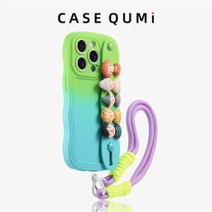 [緑と青のグラデーション] ウェーブエッジ - ドールリストバンド + ストラップ