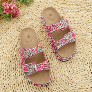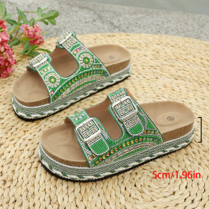 夏の水ドリル松餅欧米の対外貿易の厚い底のスリッパ2025の新型の外は大きいサイズのベルトのボタンのサンダルの女性43を着ます。