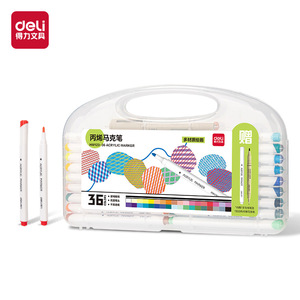 デリ アクリルマーカー 箱入り 細丸棒 三角棒 不透明色 重ね塗り可能 手を汚さない 絵筆 アート