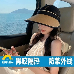 防晒帽女夏季防紫外线空顶太阳帽子遮阳草帽大帽檐遮脸可折叠草编