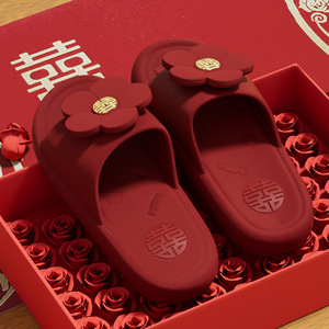 結婚式用の赤いスリッパ、夏のお祝い、高級新婚花嫁の出産祝い、滑り止めのドレッシングガウン、カップルの結婚式の靴