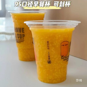 95口径プラスチック豆乳カップ朝食店粥カップPP使い捨て封口カップミルクティージュースカップ商品包装カップ