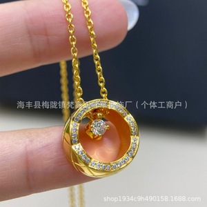 新しいスタイルのダイヤモンドがちりばめられた菱形模様の小さなゴールデンビーンズネックレス、女性用、小さな香りのVゴールド厚メッキ18Kゴールドシンプルな鎖骨チェーン、高級感
