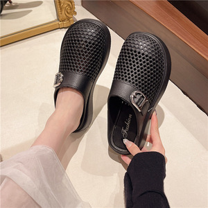 包頭織りスリッポン 2025 夏の新ハーフスリッパ厚底スリッパ中空プラットフォームレトロサンダル女性用