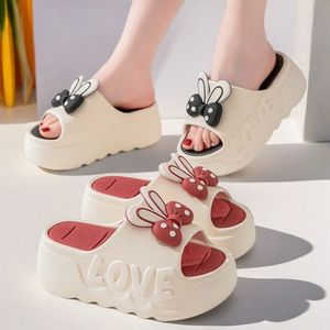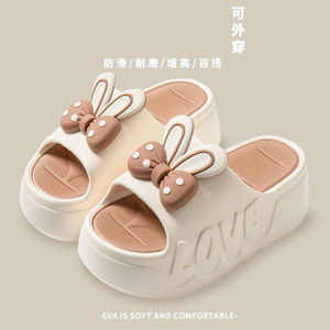 2025ウサギの耳の新型の厚い底のスリッパの夏のファッションの外は滑り止めの室内の蝶結びの松餅を着て浴室を高くします。